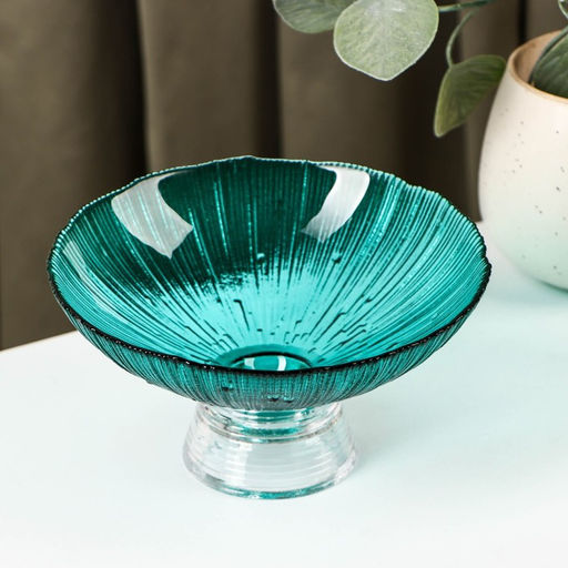 Ваза стеклянная для фруктов «Фейерверк», 350 мл, 15×7.5 см, цвет изумрудный