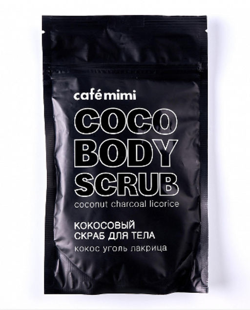• КАФЕ КРАСОТЫ le Cafe Mimi Скраб д/тела Кокосовый /кокос,уголь,лакрица/ 150г пакет с зип-лок