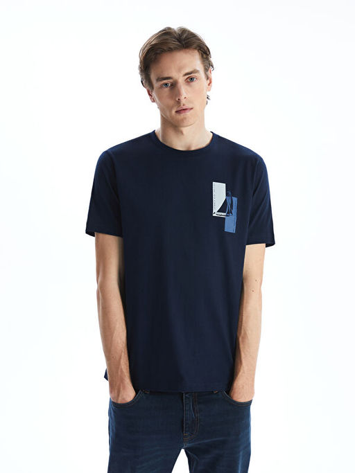 • Bisiklet Yaka K?sa Kollu Bask?l? Penye Erkek Ti??rt