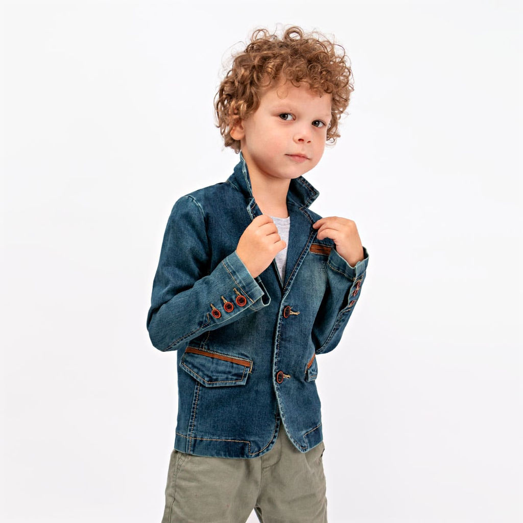 Цвет: джинсовый Бренд: RD Пол: Мальчики Производитель: Китай Сезон: круглогодичный Покрой: Приталенный Категория: Пиджак Тип рукава: Втачной Вид застежки: Пуговицы Комплектация: 1 пиджак Уход за вещью: Максимальная температура стирки 40С. Страна бренда: Китай Состав материала: 95% хлопок, 5% эластан Замеры модели* * рост указан приблизительно, ориентируйтесь на замеры * Размер 104-3 (рост 104 см) длина изделия 42 см, обхват груди 66 см, длина рукава 40 см. * Размер 110-4 (рост 110 см) длина изделия 43 см, обхват груди 66 см, длина рукава 41 см. * Размер 5 (рост 116 см) длина изделия 44 см, обхват груди 66 см, длина рукава 42 см. * Размер 6 (рост 122 см) длина изделия 46 см, обхват груди 70 см, длина рукава 44 см. * Размер 7 (рост 128 см) длина изделия 47 см, обхват груди 72 см, длина рукава 46 см. * Размер 8 (рост 134 см) длина изделия 48 см, обхват груди 74 см, длина рукава 47 см. Джинсовый однобортный приталенный пиджак с классическими лацканами. Имитация карманов и эффект вываренности придают модели более повседневный стиль. Универсальный верх для весенне-летнего сезона. Отлично сочетается как с будничными футболками, так и с праздничными рубашками.