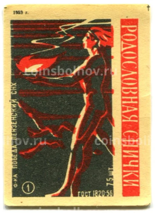 Этикетка спичечная Родословная спички №1 фабрика Победа