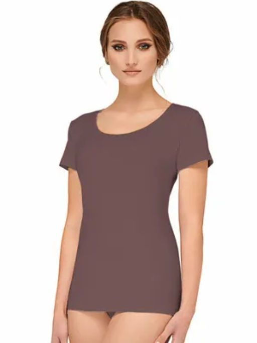 Фуфайка женская с круглым вырезом и коротким рукавом. Изделие полуприлегающего силуэта будет не заменимо на отдыхе, в быту и для занятий спортом.