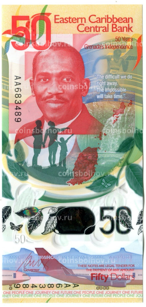 • Банкнота 50 долларов 2024 года Восточные карибы 50 лет Независимости Гренады