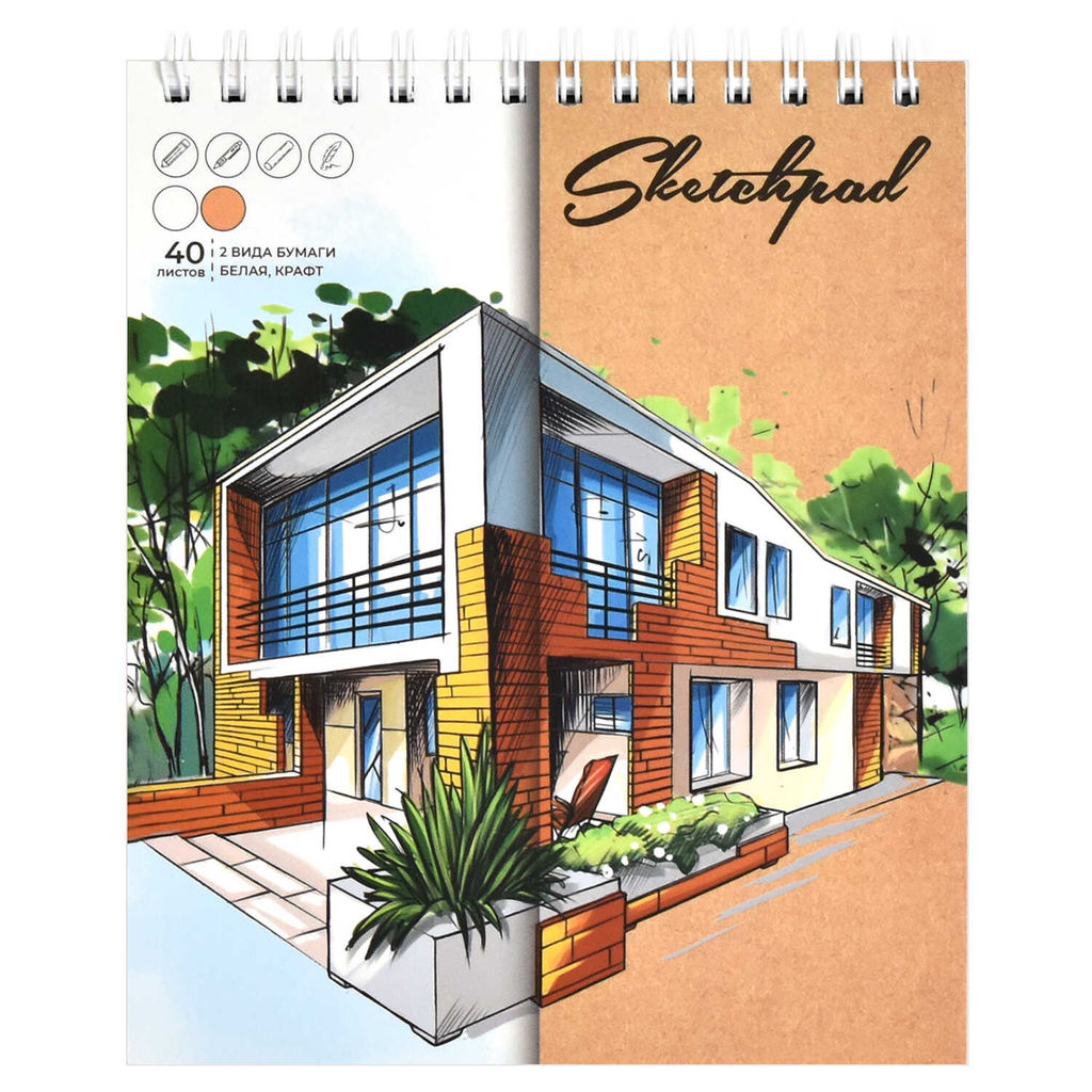 Скетчпад 125х150 мм, 40 л, блок - белый офсет, крафт-бумага 80 г/м?, арт. 67992 АРХИТЕКТУРА /обложка полноцветная печать, гребень по короткой стороне, матовая ламинация,