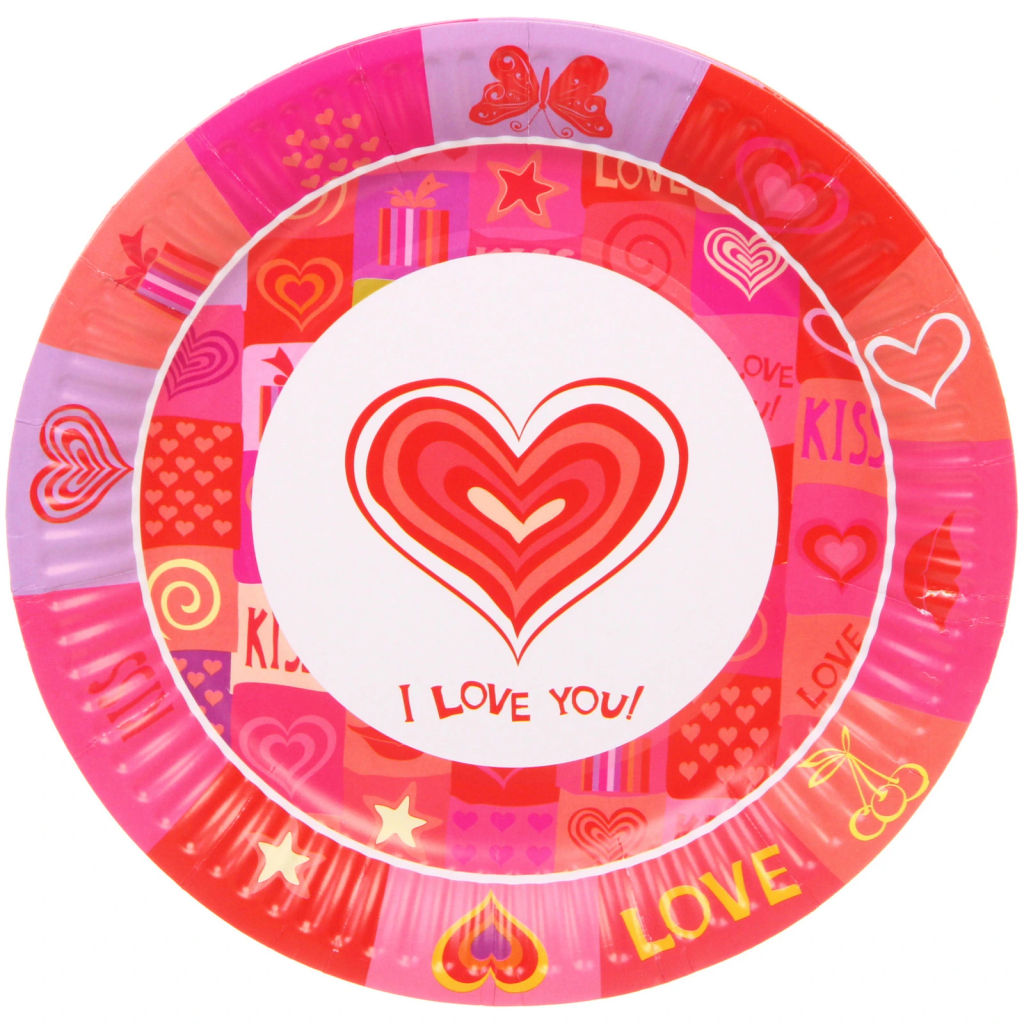 Тарелка бумажная 18 см в наборе 10 шт "Love you"