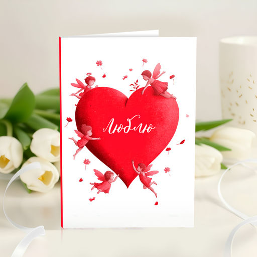 • Открытка 4 шоколадки "Люблю (большое сердце с ангелами)"