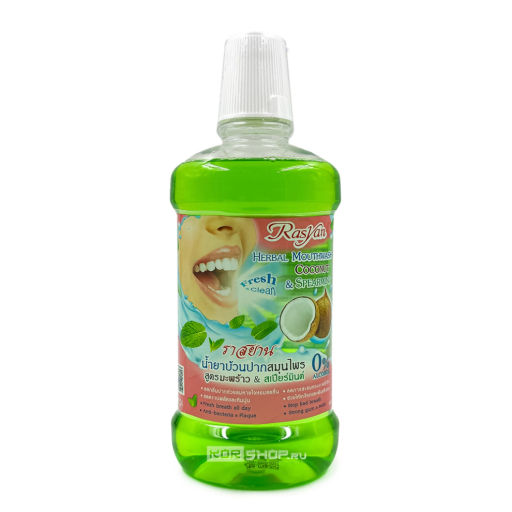 • Ополаскиватель для полости рта Райсан с кокосом и мятой Rasyan Mouthwash Coconut & Spearment, Таиланд, 500 мл