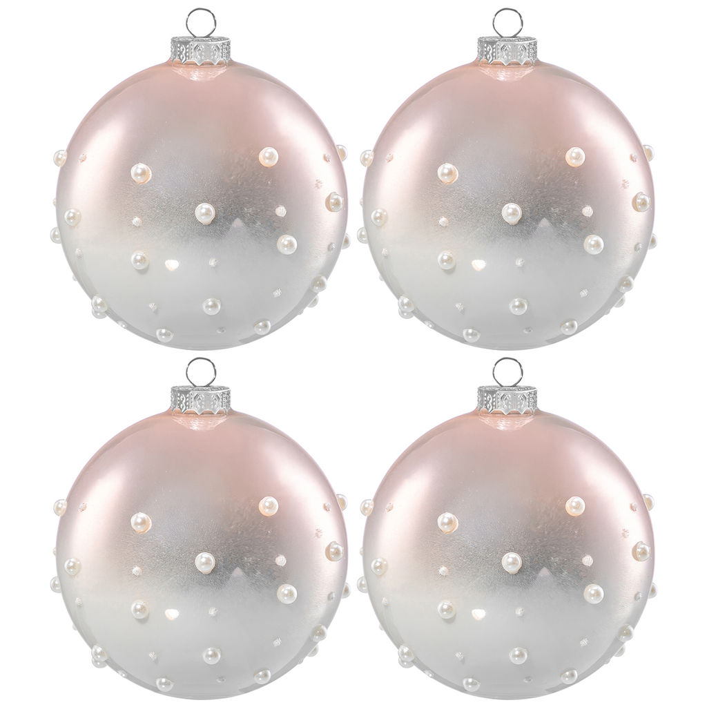 • Набор 4 стеклянных новогодних шаров 8*8 см с дизайном "Бусинки", белый нежно-розовый