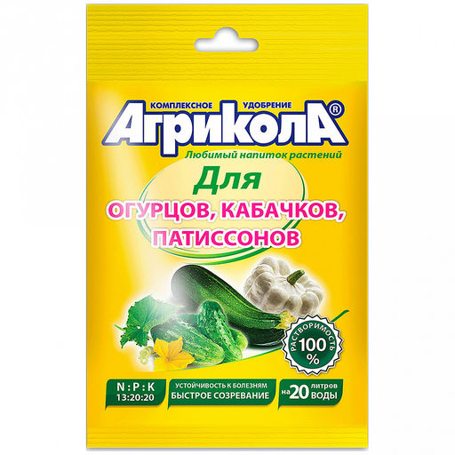 • Средство для растений, универсальное комплексное удобрение для огурцов, кабачков, патиссонов, пакет 50гр, Агрикола (Россия)