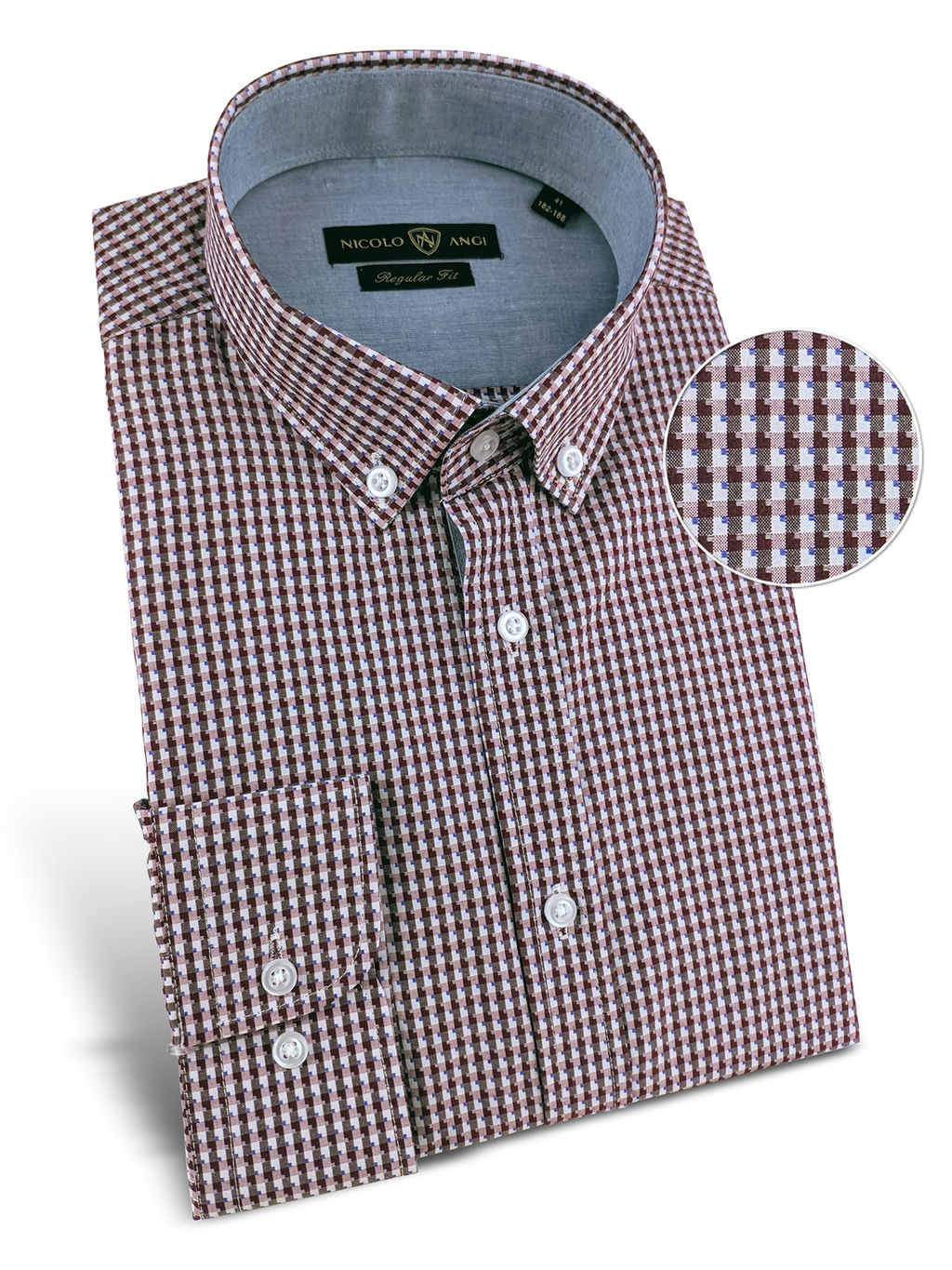 Бренд: Nicolo Angi Длина рукава рубашки: Длинный Карман: Без кармана Силуэт: Полуприталенный силуэт (regular fit) Состав: 80% хлопок, 20% полиэстер Стиль: Кэжуал Узор (рисунок): В клетку Цвет: Бордовый