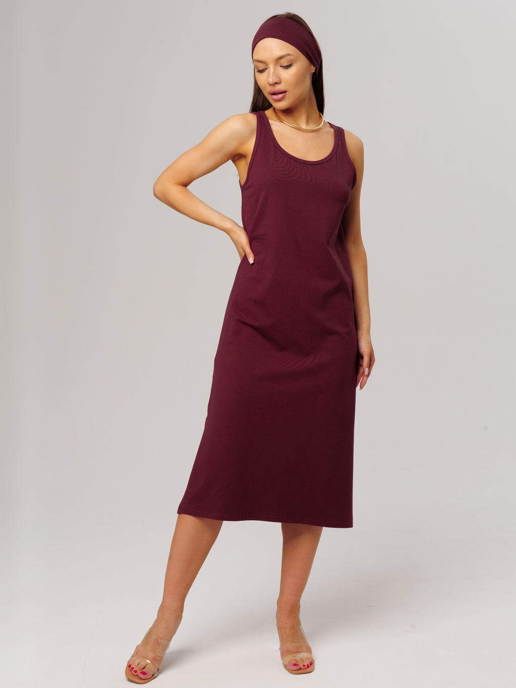 • Трикотажная удлиненная туника с разрезами темно-бордовая КТ-18 (28)