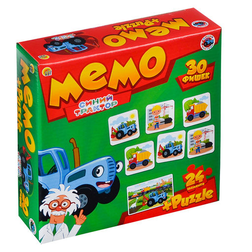 Мемо (30 фишек) + Пазлы (24 эл.) "Синий трактор"