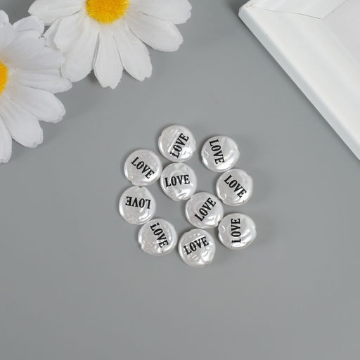 Бусина для творчества пластик «Жемчужный плоский круг - любовь», набор 10 шт., 0.3×1.2×1.2 см