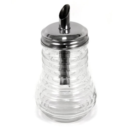 • Сахарница стеклянная "Мираж" 200мл, д7см h13,5см, металлический дозатор, цветная коробка (д/горла-4,3см; д/основания-4,3см) (Китай)