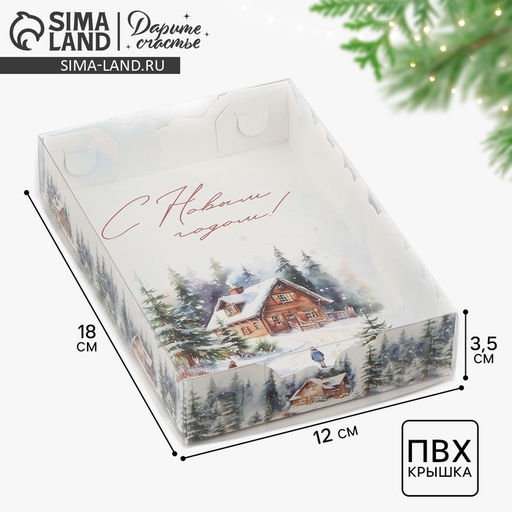 • Цена за 5 шт. Коробка новогодняя для макарун «С Новым годом», 18×12×3.5 см