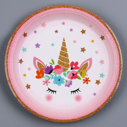 Тарелка бумажная «Единорожка», со звёздами, в наборе 6 шт.