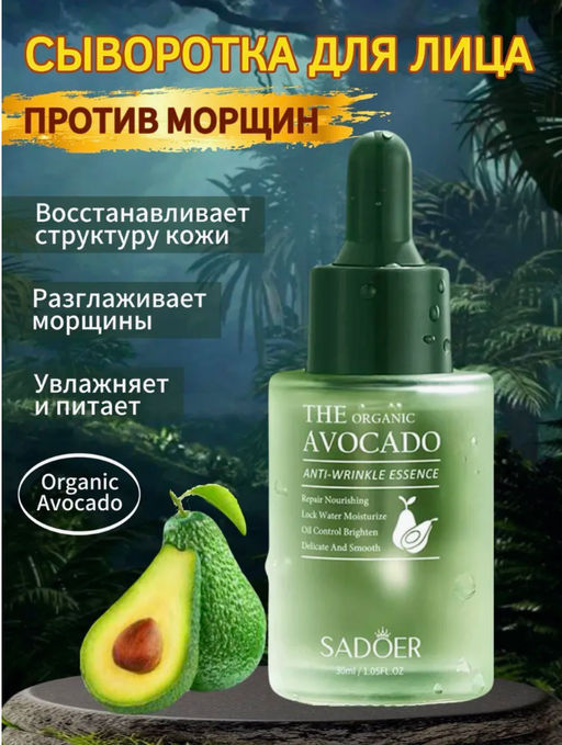 Увлажняющая сыворотка для лица авокадо от Sadoer - эффективное средство для красоты и здоровья вашей кожи. Профессиональная формула разработана, чтобы придать проблемной коже максимальный уровень увлажнения и ухаживающего воздействия. Уходовая косметика создана по корейским технологиям для борьбы с несовершенствами кожи, подходит подросткам и женщинам всех возразтов. Благодаря активным компанентам увлажняет, осветляет и омолаживает кожу. В состав сыворотки увлажняющая для лица входит ретинол - мощный антиоксидант, который борется с мелкими и глубокими морщинами и признаками старения кожи. Волшебный продукт, который способен преобразить вашу кожу и придать ей долгожданное сияние. Это настоящий мультитул в мире красоты: праймер для макияжа, база под тональный крем, основа для создания идеального тона кожи. Сыворотка от прыщей обладает мощными антибактериальными свойствами, которые помогут устранить воспаление и остановить развитие акне. От расширенных пор и пигментации, нормализует работу сальных желез и помогает впитывать натуральные компоненты такие как масло ши и масло авокадо. Благодаря этой косметике вы забудете о проблемах жирной или сухой кожи - она умело регулирует работу сальных желез и успокаивает раздражения. Черные точки или беспокоящий блеск уже не будут тревожить вас - прдукт активно работает над их устранением. Тон кожи становится ровным и сияющим, словно после профессионального ухода в салоне. Помимо этого, она обладает способностью выравнивать текстуру кожи, делая ее более гладкой и ухоженной. Антивозрастная сыворотка для лица с гиалуроновой кислотой и коллагеном глубоко увлажняет, питает и разглаживает мимические морщины. Подходит для всех типов кожи - сухой, жирной, комбинированной и проблемной. Рекомендуем использовать под макияж в дневное время и как уход в ночное время. Она разработана для вас и подойдет на подарок девушке, подруге, маме, бабушке, дарите коже здоровье и красоту, которые она заслуживает.