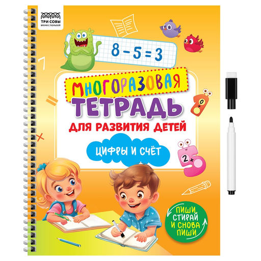 • Тетрадь многоразовая А4 30л. с маркером "Цифры и счет" для развития (КзА4_61446, ТРИ СОВЫ)