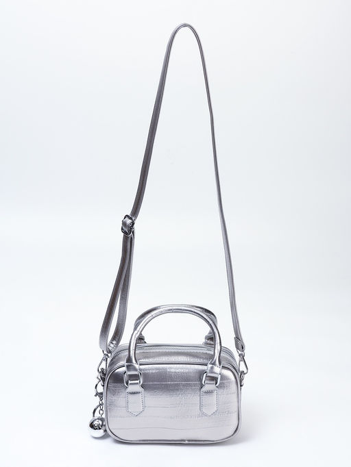 Сумка женская саквояж на молнии, 20×9×12 см, серебристая