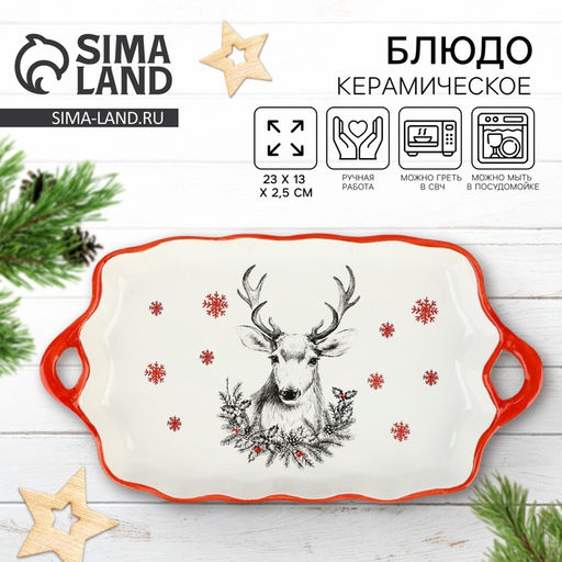 • Блюдо новогоднее «Снежный олень», 23×13×2.5 см, ручная работа