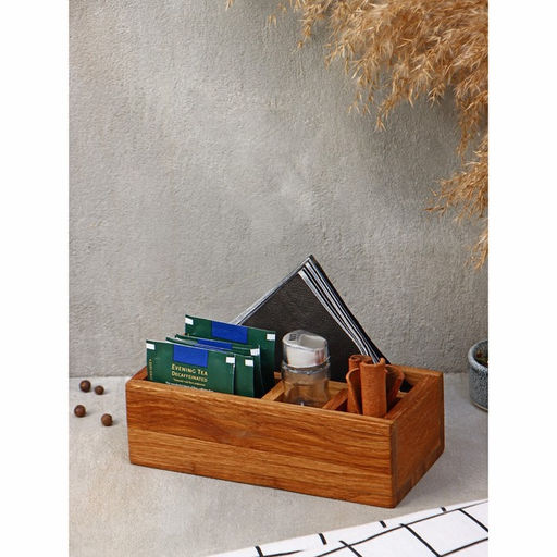 Стильная подставка-салфетница на стол, изготовлена из натурального дерева. Отлично впишется в интерьер вашей кухни.Подставка-салфетница имеет отделения под салфетки, специи (соль, перец), зубочистки. Обладает большой вместимостью и удобна в использовании!Подставка-салфетница идеально подойдет в качестве подарка для родных и близких на новоселье, новый год и просто на любой праздник, а также будет великолепно смотреться на столике ресторана.Достоинства:неограниченный срок службы,экологический и безопасный для продуктов питания материал,стильный дизайн.В случае загрязнения протирать влажной тряпочкой. Не использовать жёсткие губки и абразивные вещества, не замачивать в воде и хранить в сухом месте. Форма: Прямоугольная. Длина, см: 19. Ширина, см: 9.5. Высота, см: 5.5. Количество секций: 4. Рисунок: Нет. Примечание: Изделие нельзя мыть в посудомоечной машине. Примечание: Изготовлено из натуральных материалов.. Примечание: Изготовлено из натуральных материалов. Поверхность может иметь шероховатость и сучки, которая никак не сказывается на функциональном состоянии..