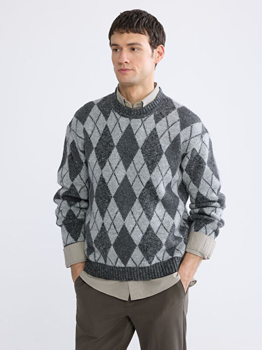 • Bisiklet Yaka Desenli Erkek Triko Kazak