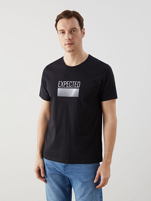 Bisiklet Yaka Bask?l? Penye Erkek Ti??rt