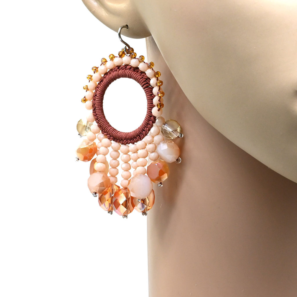 • Серьги ручной работы с цирконами в оплетении цв.каштан