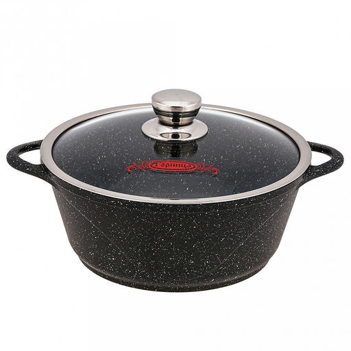 Кастрюля с антипригарным покрытием 4л, д26см "Гранит Induction", h11,5см, s0,4см, литые ручки, стеклянная крышка с пароотводом, форма "Классик волна", подарочная упаковка (Россия) Подходит для всех видов плит, включая индукционную.