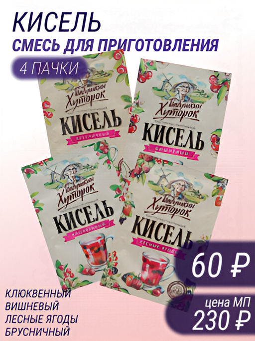 Кисель Бабушкин Хуторок 4 шт: брусничный, вишневый, клюквенный, лесные ягоды