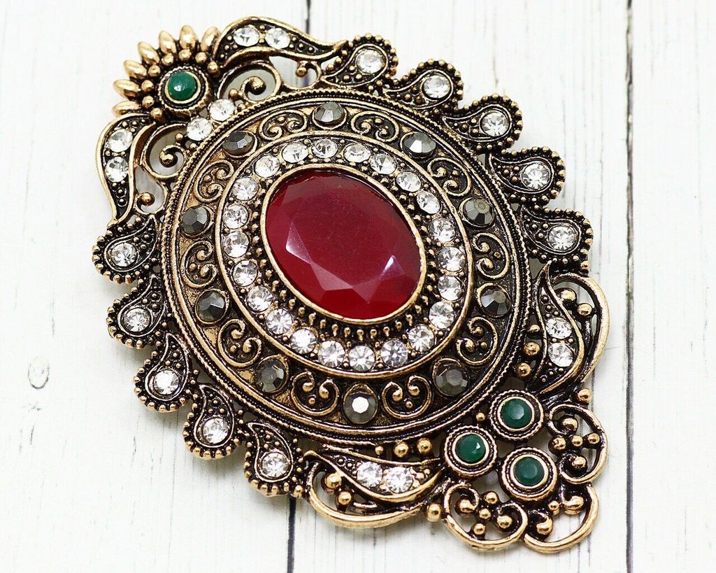 Красивая брошь восточного стиля из специального гипоаллергенного ювелирного сплава,который покрыт золотом или устойчивым родиевым покрытием, предотвращающим раздражение кожных покровов.