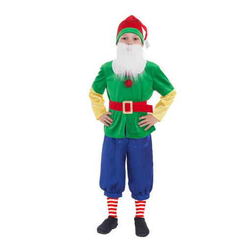 Карнавальный костюм детский «Гном зелёный», колпак, жакет, бриджи, борода, пояс, р. 28, рост 98-104 см