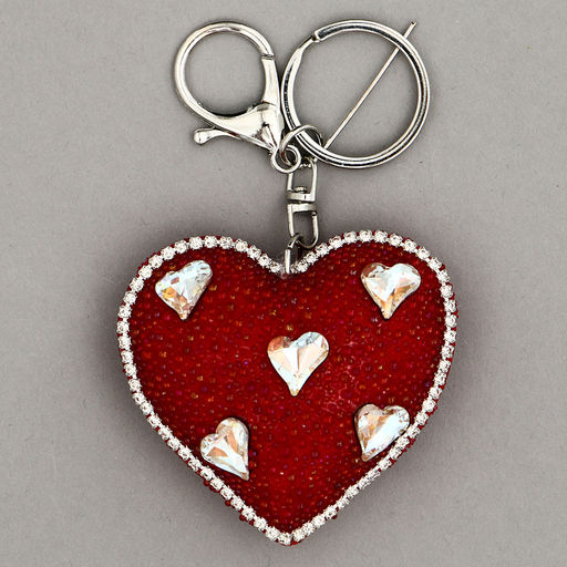 • Брелок для ключей на кольце с карабином Объемное сердце, со стразами, 7 см, красный