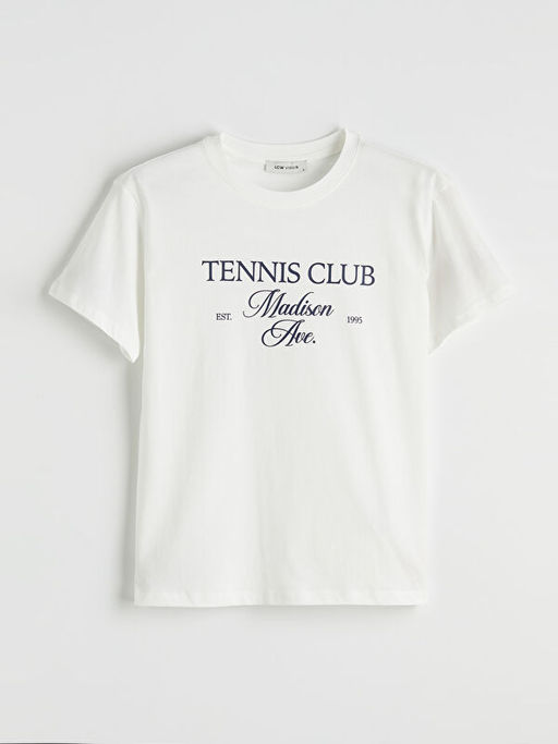 • Bisiklet Yaka Bask?l? Kad?n Ti??rt