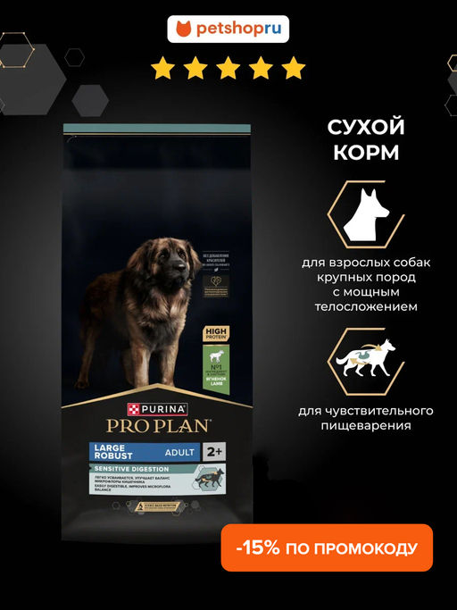 • Сухой корм для собак крупных пород с мощным телосложением с чувствительным пищеварением с ягненком (Large Adult Robust Lamb) 12294786/ 12377395
