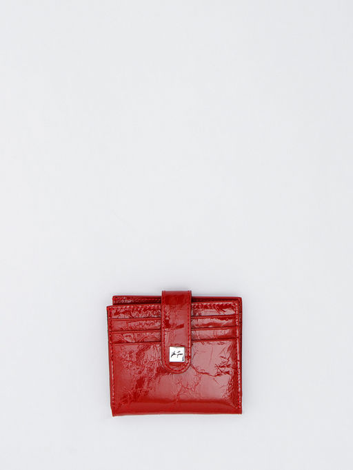 Кошелек женский из натуральной кожи. Модель раскладывается пополам, закрывается на хлястик. Внутри открытый отдел под купюры, восемь карманов для визиток и пластиковых карт. Снаружи карман на молнии. Фурнитура блестящее серебро.­