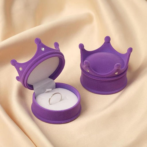 • Футляр под серьги, кулон, кольцо Корона, бархатный, 5.5?5.5?4.5 см, фиолетовый