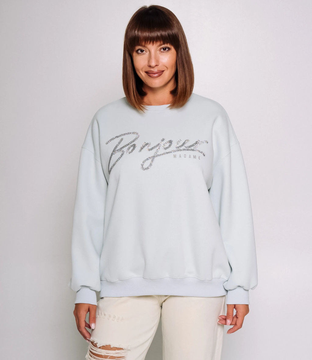 Свитшот это не просто одежда, а стильный элемент гардероба, который подчеркивает уникальность и индивидуальность каждой женщины. Эта модель, выполненная из высококачественного материала 100% хлопка, сочетает в себе комфорт, практичность и модные тенденции. Созданный в свободном стиле с округлым вырезом горловины, свитшот обеспечивает легкость и непринужденность в носке. Длинные рукава с эластичными манжетами и плотная трикотажная отделка по низу изделия обеспечивают идеальную посадку, что позволяет чувствовать себя комфорт в любой обстановке. Яркая надпись представлена в виде пайеток. Свитшот легко комбинируется как с джоггерами, так и с джинсами, позволяя вашим покупателям создавать стильные и разнообразные образы. На странице представлены размеры, что поможет вашим клиентам выбрать идеальный вариант. Мы уверены, что установленная цена является доступной, что делает этот свитшот отличным дополнением к вашему ассортименту. Не упустите возможность предложить своим покупателям модную и комфортную модель, которая отлично дополнит любой гардероб! Подарите им шанс оставаться стильными и чувствовать себя уверенно с этим привлекательным свитшотом, который подчеркнет их индивидуальность и модные предпочтения! Вы можете заказать онлайн презентацию на интересующие Вас модели. Наши менеджеры свяжутся с Вами и проведут индивидуальную видеотрансляцию, помогут составить заказ и ответят на Ваши вопросы. -- Характеристики -- Цвет: голубой Пол: Женский Страна производитель: Китай Сезон: Демисезон Материал: Хлопок
