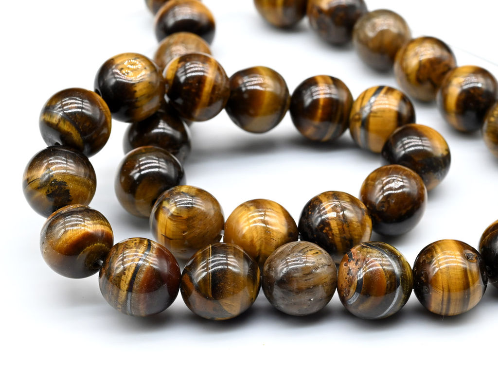 • Бусины из тигрового глаза шарик 12мм, 38см, 31 бусина Радуга камня