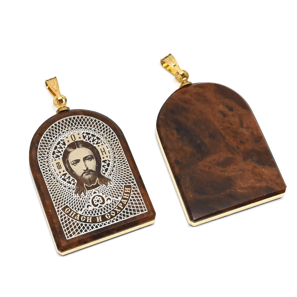 • Кулон из обсидиана арка с окантовкой Иисус Христос 19*25мм.