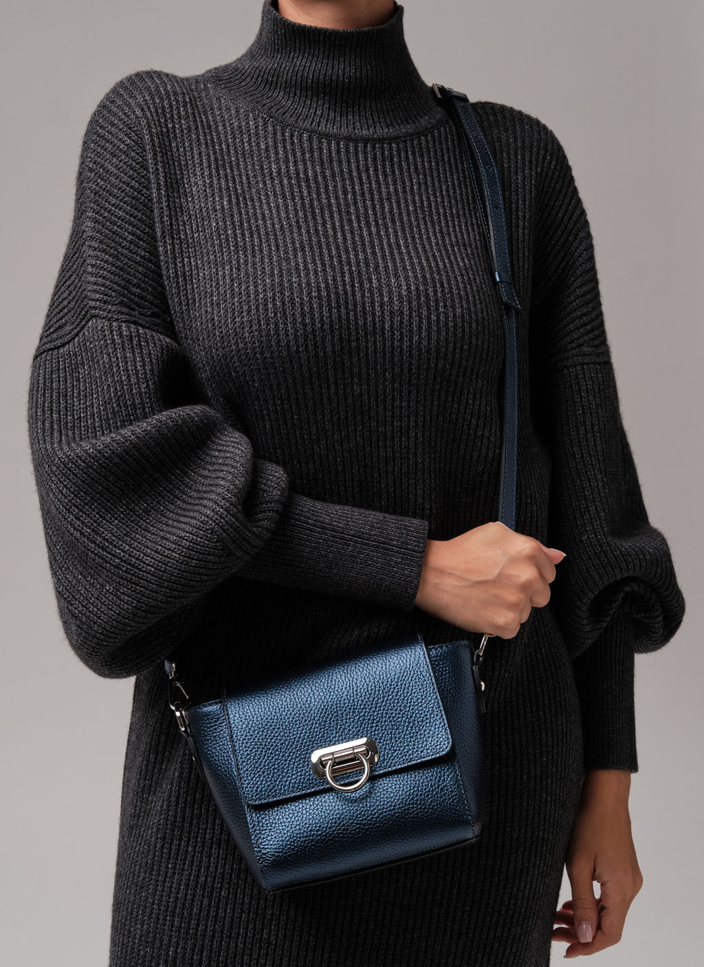 Женская кожаная сумка кросс-боди Azaro 3520 синий металлик - стильный акцент для тех, кто ценит лаконичность и качество. Детали: натуральная кожа, внутренняя отделка клапана из натуральной замши, съемный регулируемый ремень, 1 внутреннее отделение, 2 внутренних кармана - на молнии и открытый, застежка на молнию и замок-вертушку. Выполненная из натуральной кожи, эта сумка кроссбоди обладает выразительной текстурой и безупречным исполнением. Синий перламутровый оттенок, глубокий и насыщенный, придаёт образу утончённость и элегантность. Этот цвет идеально сочетается как с нейтральными, так и с контрастными тонами, делая сумку универсальной деталью гардероба. Компактная форма и функциональный дизайн обеспечивают комфорт в повседневном использовании, а металлическая фурнитура в серебристом тоне добавляет современного шика. Сумка станет стильным завершением образа и подчеркнёт безупречный вкус своей обладательницы. -- Характеристики -- Цвет: синий/металлик Бренд: Azaro Тип: Сумка через плечо Страна-изготовитель: Россия Высота, см: 14 Ширина, см: 21 Глубина, см: 10 Материал подкладки: Хлопок Количество внутренних отделений: 1 Тип застежки: Молния Формат А4: не вмещает Длина плечевого ремня, см: 114 Пол: женская коллекция Группа товара: Сумки