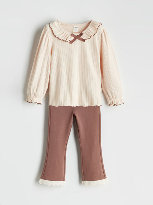 Bebe Yaka F?rf?rl? K?z Bebek Bluz ve Tayt Pantolon