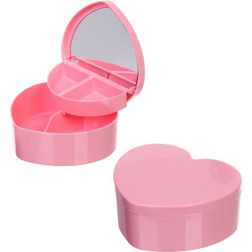 • Цена за 2 шт. Шкатулка пластиковая с зеркалом "KiKi HAUS", сердце, цвет розовый, 13.5*11.5*5.5см