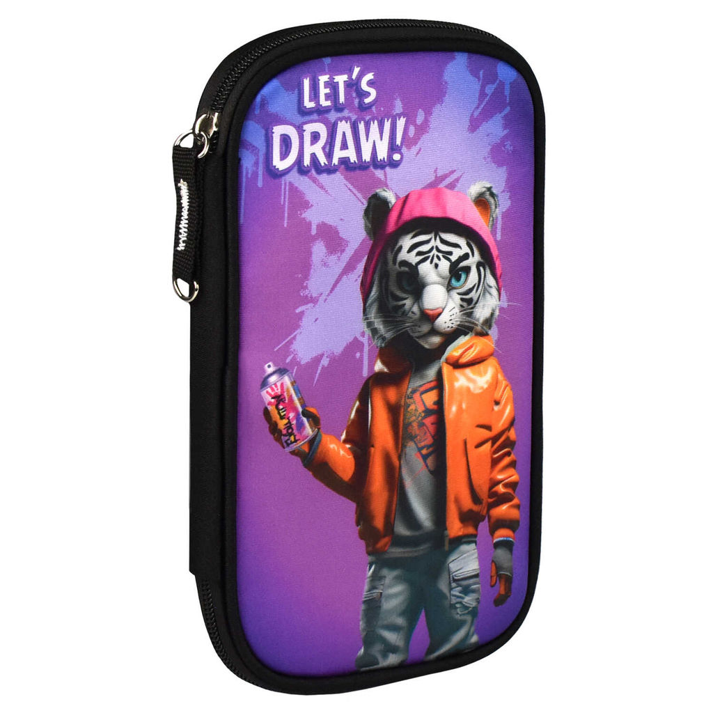 • Пенал школьный Феникс+, арт.65504/ 24 БЕЛЫЙ ТИГР 13,3х21х2,5 см, полиэстер, молния, сублимационная п