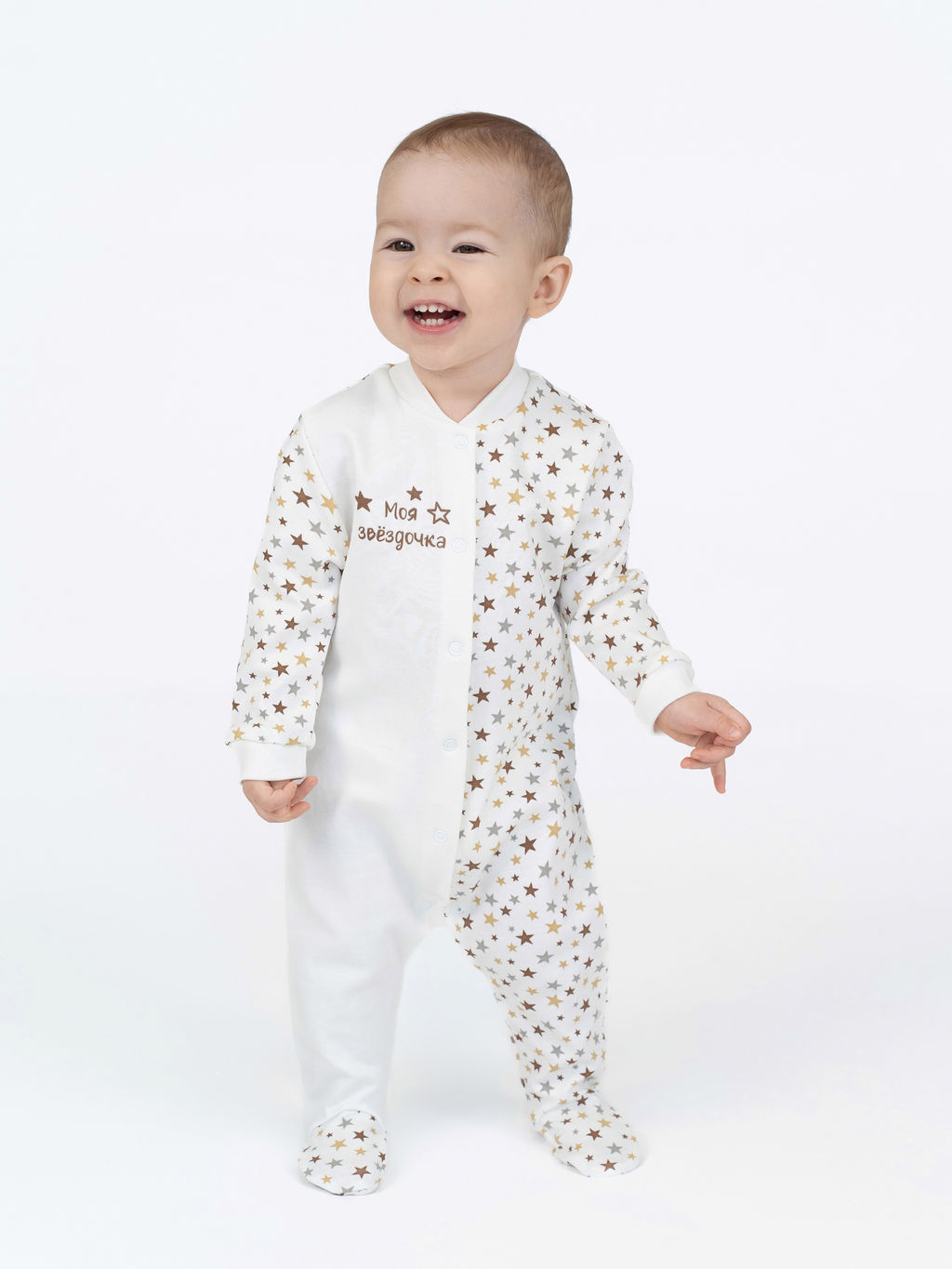 Ясельный комбинезон для мальчиков и девочек для дома и улицы. Нежный, мягкий и гипоаллергенный трикотаж устойчив к частым стиркам. Модель с закрытыми ножками и длинными рукавами. Застёжки-кнопки спереди, мягкий воротник-стойка, манжеты на рукавах и ластовица. Комбинезон с рисунком, на однотонной части спереди – принт.