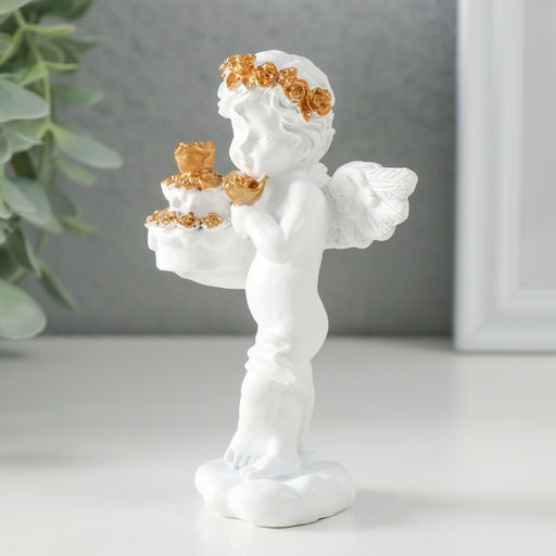 Фигурка полистоун Белоснежный ангел с тортом украшенным розочками, 6?4.5?11 см