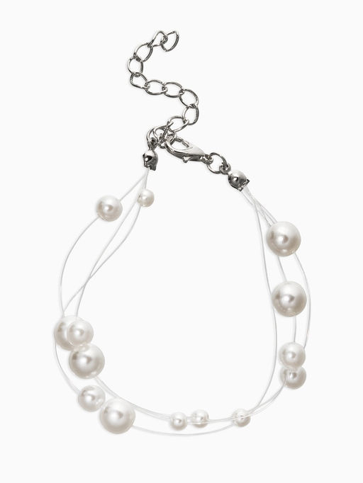 • Браслет жемчуг «На леске», 3 нити, бусины №4, 6, 8, цвет белый в серебре, 16 см