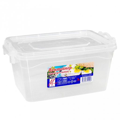 Контейнер для продуктов пластмассовый 3л, 26х17х12см, прямоугольный, 2 защелки, прозрачный (Россия)