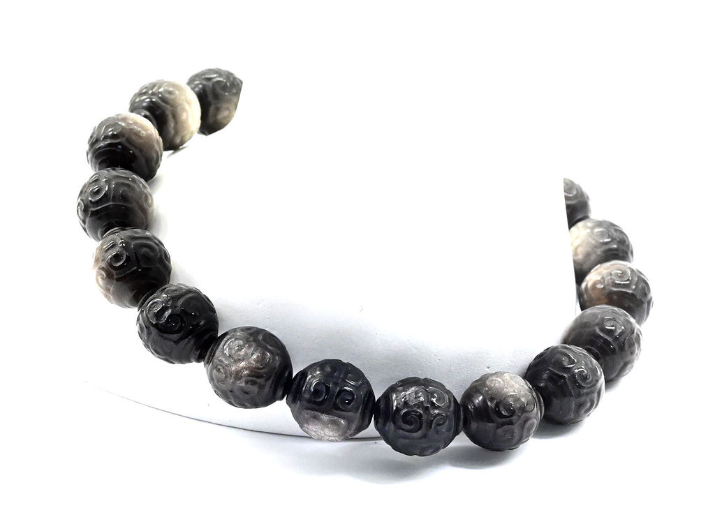 • Браслет из Обсидиана шарик резной 8мм, 15г