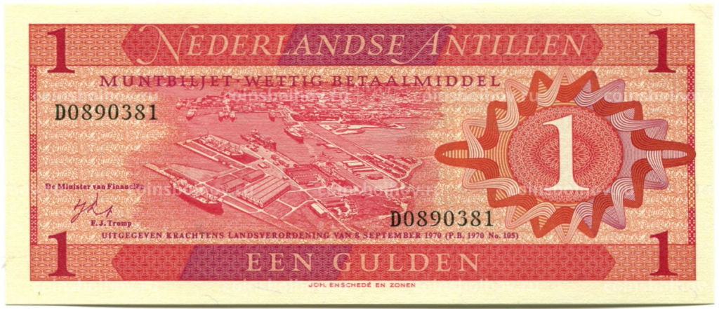 • Банкнота 1 гульден 1970 года Нидерландские Антильские Острова